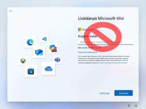 Jos sinulla on Microsoft tili lisää se tähän. Jos et halua lisätä tiliä valitse Offline-tili.
